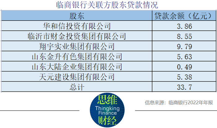 此外,2022年年报显示,临商银行还和多名股东存在大额关联交易。截至2022年年底,临商银行分别向华和信投资有限公司、临沂市财金投资集团有限公司、翔宇实业集团有限公司、山东金升有色集团有限公司、山东大陆企业集团有限公司以及天元建设集团有限公司等股东总计发放33.7亿元贷款,其中仅翔宇实业集团有限公司一家贷款就接近10亿元。