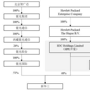 据了解,2016年5月,紫光股份通过全资子公司紫光国际完成对新华三51%股权的收购。2016年5月1日,紫光国际与HPE开曼、新华三签署了《股东协议》。2017年12月6日,HPE开曼向其全资子公司Izar Holding Co转让了新华三1%的股权;该次股权转让完成后,Izar Holding Co成为新华三的股东,受《股东协议》约束。