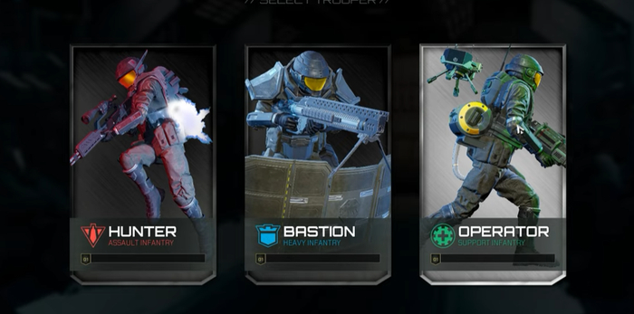 《星河战队:灭绝》中处处强调着合作,除了单兵难以应付的虫群,玩家在每次匹配进一局游戏中时,便会进入选择四人合作小队的界面,暗示玩家进行分工,随后又进入职业选择界面,对每个角色的分工进行细化。