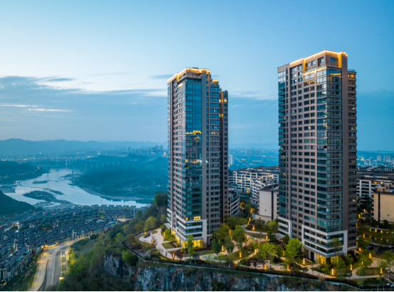作为重庆华侨城大社区海拔最高的组团,位于礼嘉板块的制高点——高度约390米的狮峰山山顶,居于此,礼嘉的江、山、桥、城、园等多重景观一览无遗。