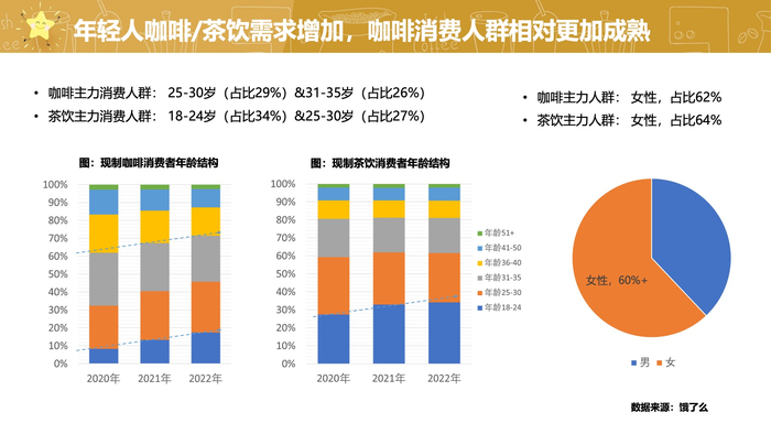 同时,报告也揭示了消费人群和消费时间上的差异。咖啡的主力消费人群为25-30岁和31-35岁,而茶饮则更加注重成熟和健康。从消费时间上来看,咖啡消费主要在早、午餐时间,茶饮则主要在午后,由此“早咖午茶”成为新一代消费者的生活方式。
