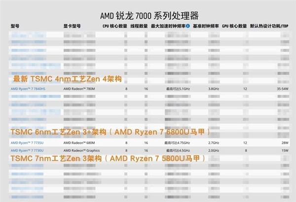 特别需要注意的是,如果选择AMD锐龙7000系列处理器+DDR4处理器的笔记本,就要特别注意了,这款CPU极有可能是两年前锐龙5000系列的马甲!