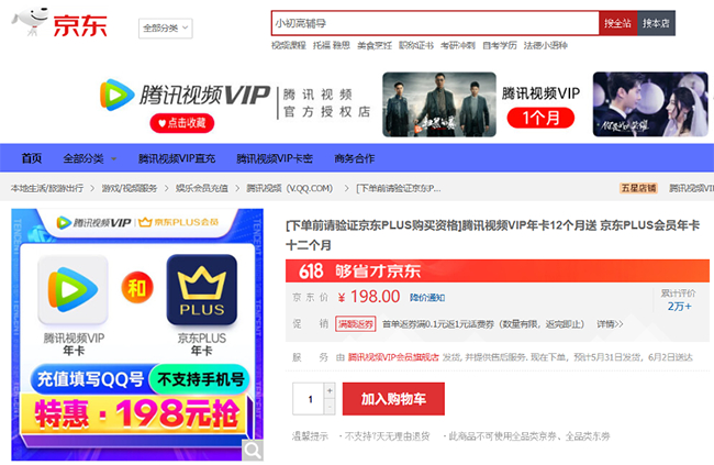 视频会员还可以选择腾讯视频VIP年卡和京东PLUS年卡,特惠仅需198元,比平时单独充值便宜不少,非常划算。