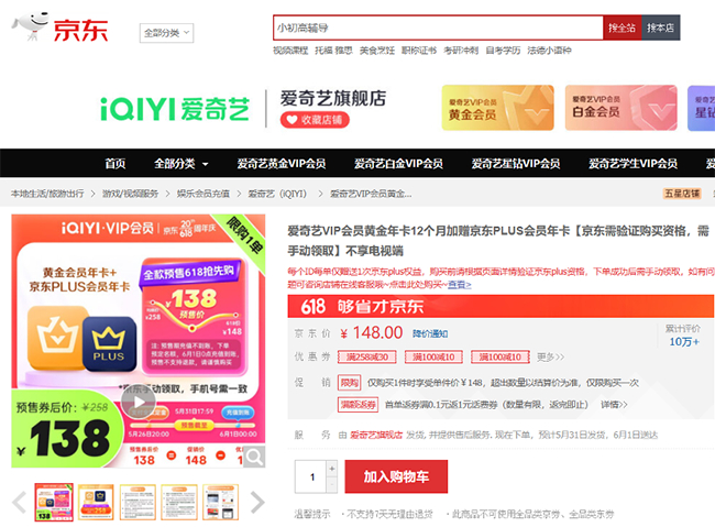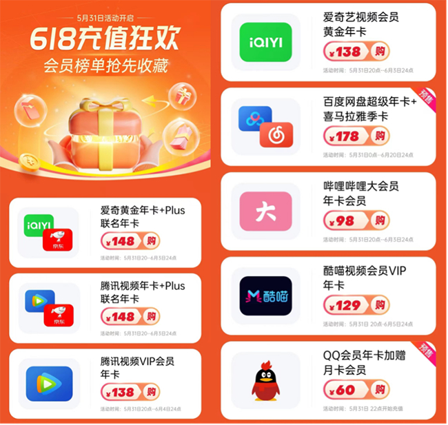 618充值会员认准京东 一站式优惠搞定爱奇艺、百度网盘等APP会员