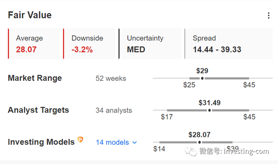 而在英特尔方面,分析师和估值模型与给出的目标价,则相当一致。