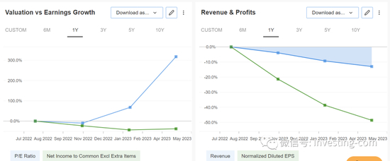 对于英伟达来说,该股的股价大涨是基于叙事和前景预期,并不是基于增长。当然,该公司的未来前景是令人鼓舞的,但问题是,这些故事能在多大程度上被定义为当前的价值。而如果出于某些原因,这些估计的数字低于市场预期呢?