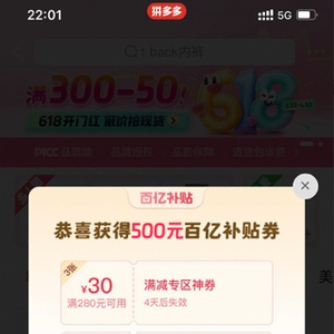 5月30日晚10点,拼多多“618开门红”活动全面启动。即日起至6月3日24点,拼多多百亿补贴狂撒50亿优惠券,打造史上最实惠“618”大促。活动期间,每人最高可领取500元优惠券,均可在百亿补贴的基础上叠加使用。