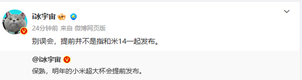 5月31日,有相关数码博主较为确切地爆料称:明年的小米超大杯会提前发布。这里的“小米超大杯”指的应该是小米14 Pro这款机型。相关数码博主同时表示,这里的提前并不是指和小米14一起发布。
