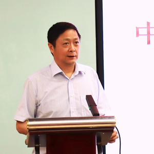↑中国控制吸烟协会副会长廖文科在“中国控烟校园行”推进会上发言