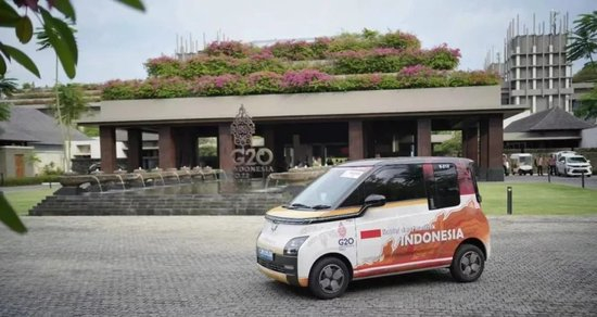 2022年底,在印度尼西亚巴厘岛举办的G20峰会上,新闻报道画面中多次出现一款跟宏光MINI EV极为相似的小车。