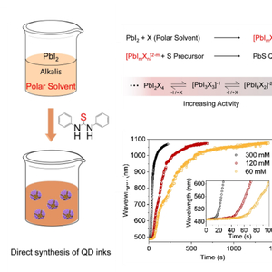 为了解决上述问题,近期,苏州大学团队设计了一种一步直接合成的方法,来制备低成本的硫化铅胶体量子点半导体墨水。通过该方法制备的墨水,不需要再进行配体交换处理就能直接用于光电子器件的制备。