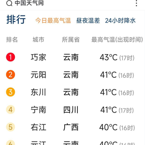 ↑6月2日,中国天气网高温排行榜