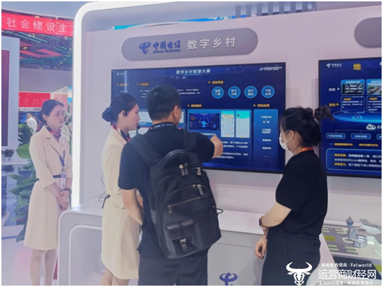 智绘新时代,幸福更有“数”。步入以“国云启新程 数智连未来”为主题的中国电信主展区,可以看到天翼数字乡村展现的农村新生活的生动画卷:一张智慧大屏汇聚平安乡村、天翼云播、乡村地图、村户管理等功能模块,成为政 府综合治理能力的展示窗口,乡镇治理的“指挥中心”;村民在家就能缴水电费不用跑腿、AI智能摄像头实时守护全村安全、田间地头可以随时随地收到村里最新通知……全国统一的数字乡村云平台帮助传统乡村走向“智”理之路,实现农村产业智能化、乡村治理数字化、村民生活智慧化,为乡村建设和乡村振兴注入了“数字动力”。