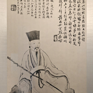 翟晓楠认为,或许还和为苏东坡生日祝寿的“寿苏会”有一定关联。清代文人热衷为东坡过生日,大家在农历腊月十九举办纪念活动,张挂东坡画像,陈设墨、砚等文房用品、东坡著作等,然后集体吟诗作对,歌咏东坡。《东坡笠屐图》就是最常张挂的图画。而本次展览展出了清佚名《坡公笠屐图》和民国张大千《东坡笠屐图》(复制件)。两幅《东坡笠屐图》的题诗说明这两幅画用于“寿苏会”纪念东坡,而两幅画中的东坡,都是“虬髯公”的形象。