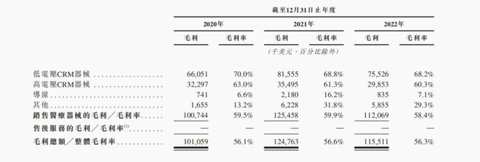 从构成来看,微创心律绝大部分收入是来自低电压CRM器械和高电压CRM器械的销售,2020年至2022年(以下简称报告期),二者合计分别为公司贡献了80.9%、80%和78.1%的营业收入。