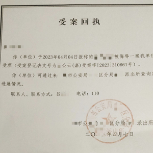 ↑警方受案回执