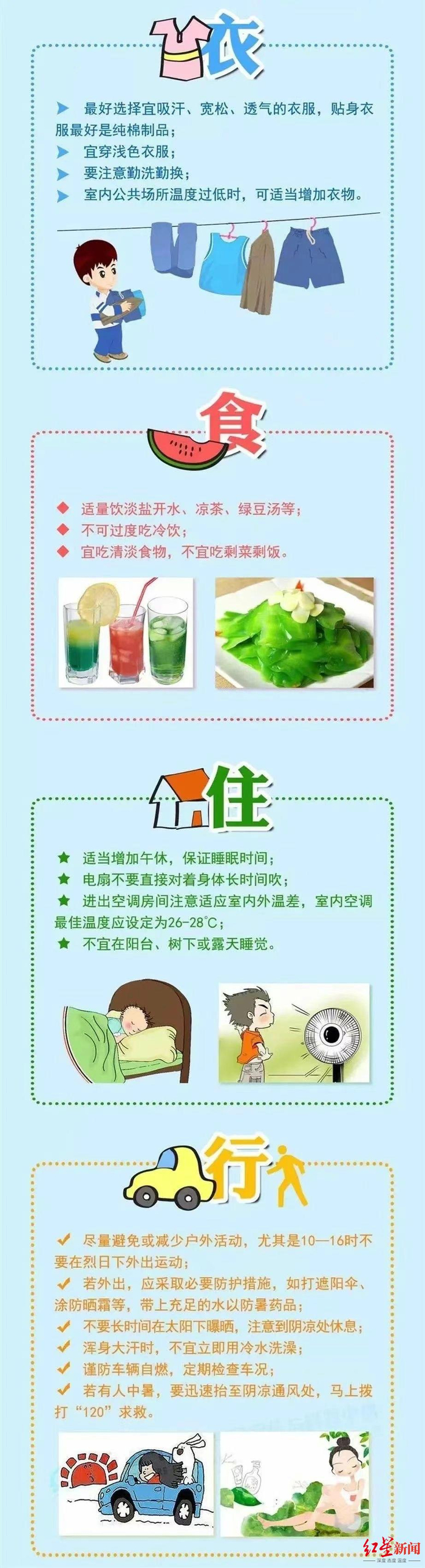 4、特别注意老弱病幼人群的防暑降温。
