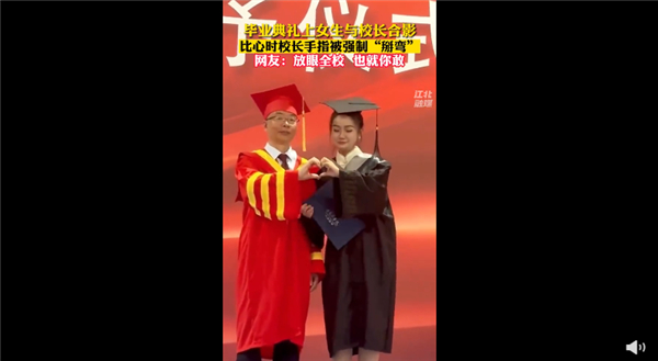 毕业典礼比心时校长手指被强制“掰弯” 画面引网友发笑:够胆大