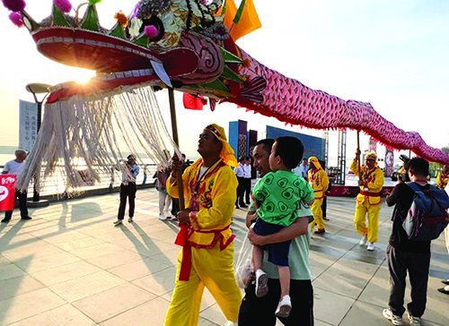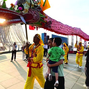无为鱼灯、南陵滚龙灯、湾沚跑旱船、鸠江狮子灯……6月9日下午,一支百人民俗巡游队伍在芜湖太古市集沿江进行表演。巡游队自大剧院出发,以“中江塔”牌坊为终点,表演者在巡游中融入表演技巧,并与现场观众互动,现场气氛火爆,热闹非常。