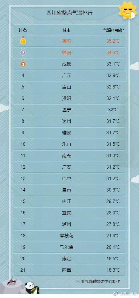 热浪再袭!四川气象:盆地大部超过30℃,德阳率先冲上35.2℃