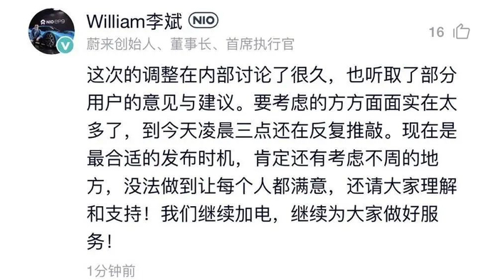 “之前开玩笑说,销量一直在每月1万辆上下晃荡,我和力洪就得找工作去了。可没想到,最近销量一下子晃荡到几千辆了,这下连工作都找不到了。” 在分享决定缩减换电权益,将旗下所有车型产品起售价降低3万元的心路历程时,蔚来创始人、董事长兼CEO李斌这样说道。在今年4、5月份,蔚来销量均不到7000辆。尤其是刚刚过去的5月,蔚来全系车型销量仅为6155辆,创下了13个月以来的新低记录。而在6月9日的蔚来财报电话会上,李斌才宣布“有信心让销量在下半年实现单月2万辆”。这也许就是为何,蔚来如此着急地推出“降价”政策。李斌介绍称,尽管对于该政策已经研究了几个月的时间,但直到政策最终宣布的6月12日凌晨3点,其细节条款还在讨论中。