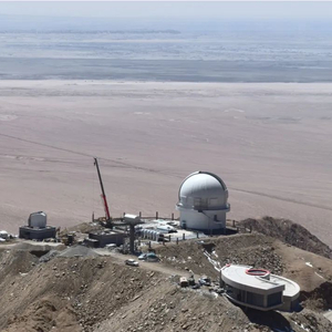 不远处,一辆辆卡车运载着线缆与工控机驶向用于太阳磁场精确测量的中红外观测系统(AIMS)望远镜项目区。或远或近处,一个个白色圆顶的望远镜点缀在苍凉粗粝的山间。