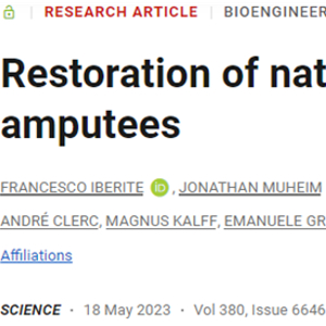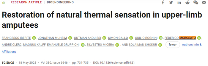 Francesco Iberite et al. Restoration of natural thermal sensation in upper-limb amputees. Science, 2023, doi:10.1126/science.adf6121.