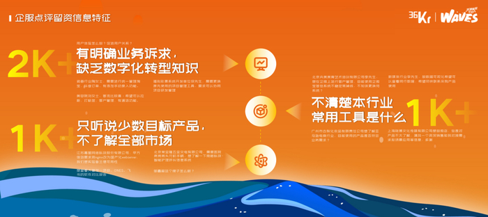 这一页是我们统计近期的36氪企服点评平台上,大概2000多个留资的信息。针对这些留资信息,我把它总结归类为了三类问题。