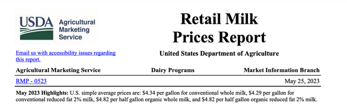 根据美国农业部发布的美国牛奶市场的数据显示,2023 年5月,美国全脂牛奶每加仑的价格为 4.34 美元。按照近期美元兑换人民币汇率换算,美国1升牛奶的价格大概在8元人民币左右。