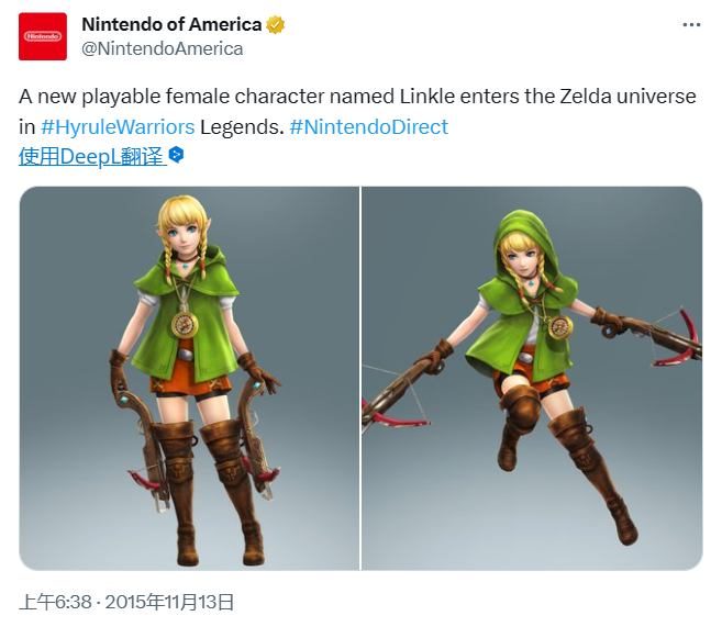实际上就在这段采访的不久前,曾经埋没在废案之中的女版林克“林克尔”(Linkle)就正式加入了《塞尔达无双》中,不少玩家认为,这是任天堂“迈向未知的一大步”。
