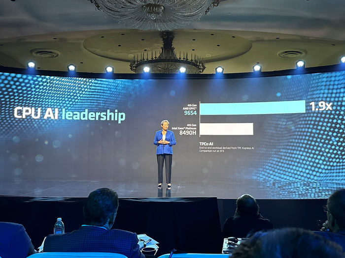 这是AMD在疫情之后首次在旧金山举办线下发布会。相比数年之前刚刚进军数据中心处理器市场时的奥斯汀发布会,现在的苏姿丰充满着自信。现场大屏幕的PPT上,满眼都是市场领先者Leadship的关键词。这位被中文媒体戏称为“苏妈”的全球女性商业领袖,有着更大的野心。