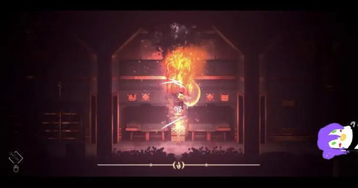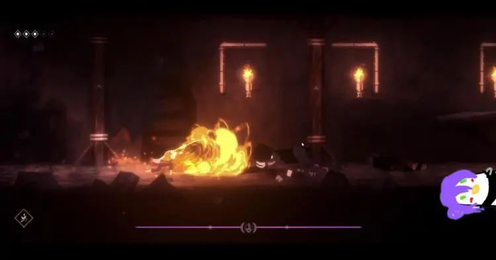 作为游戏中最重要的部分,也是主角最重要的机制,就是能够利用场地中的火焰给自己的武器“附魔”,在一定的时间内会保持燃烧状态,以此来利用火焰与场景、怪物互动。