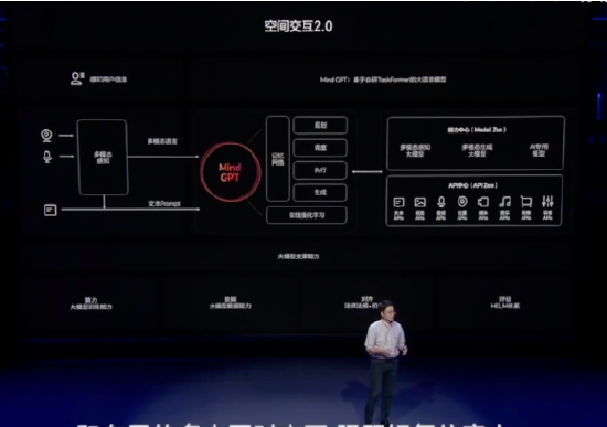 在后续的演讲中,陈伟详细介绍了理想同学的多模态感知能力,包括视觉感知和语音感知。他提到采用了视觉预训练的大模型和多任务学习技术,实现了车内视觉感知和三维重建算法,并结合多路麦克风采集的语音信号进行人声分离和定位。此外,他还提到了大模型“Mind GPT”的引入,该模型具备丰富的通用能力,包括丰富的知识储备和语言理解能力。