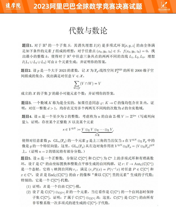 阿里全球数学竞赛决赛真题曝光 难度堪比博士资格考试