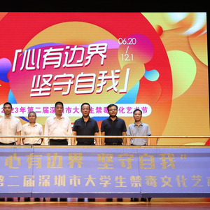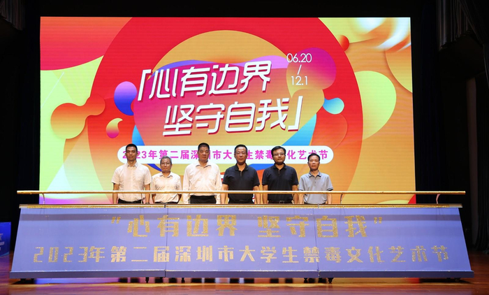 6月20日,由深圳市禁毒委员会办公室主办的“心有边界 坚守自我”2023年深圳市第二届大学生禁毒文化艺术节在深圳大学国际会议厅开幕。市禁毒委副主任、市公安局副局长方洪声,市禁毒办副主任、市公安局禁毒局局长邓广生,市教育局、市卫生健康委、团市委相关领导以及深圳市10所高校的负责同志及师生代表参加活动。