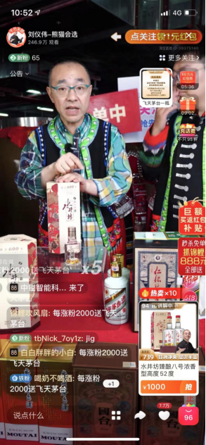 6月16日,茅台镇仁怀酱酒的酒窖里,主播刘仪伟穿着贵州特色服饰,背靠着数千坛酱香酒,与镜头前的消费者互动,将酱香酒的酿造故事及品鉴过程娓娓道来。当晚,茅台镇十大名酒集体亮相淘宝直播间,这种溯源形态的直播,拉近了主播与消费者的距离,也增加了双方之间的信任。