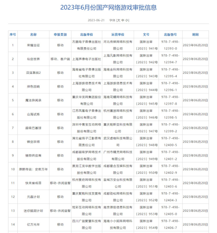 6月21日,国家新闻出版署公布了6月国产网络游戏过审版号名单,本次共有 89 款游戏过审。