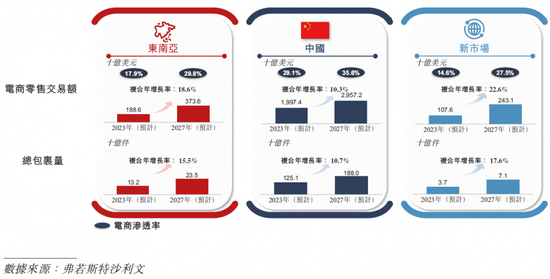 据弗若斯特沙利文(Frost & Sullivan)报告,极兔速递为2022年东南亚排名第一的快递运营商,市场份额为22.5%。其在2020年进入国内快递市场,去年共处理境内包裹超一千两百万件,按包裹量计算的市场份额达到10.9%。此外,极兔速递还是亚洲首家进驻沙特阿拉伯、阿联酋、墨西哥、巴西和埃及的成规模快递运营商,能够为合作的电商平台拓展新市场时提供支持。