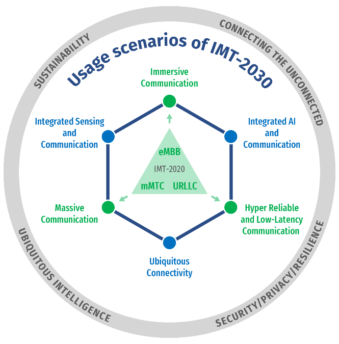 建议书认为,随着信息和通信技术的发展,IMT-2030(6G)有望支持丰富和沉浸式的体验,增强无处不在的覆盖,并实现新形式的合作。此外,与IMT-2020(5G)相比,IMT-2030被设想为支持扩大和新的使用场景,同时提供增强的和新的能力。