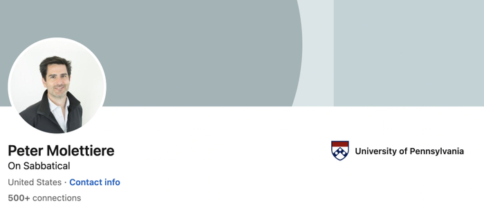 Peter Molettiere毕业于宾夕法尼亚大学,第一份工作是Vox Medica担任资讯系统经理(Information System Manager)一职。