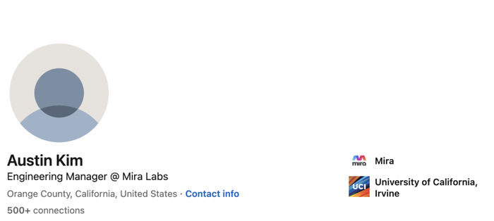 Austin Kim毕业于美国加州大学尔湾分校,曾先后在Open2、Rush、Society、Vertebrace担任全栈工程师,2018年正式加入Mira,成为一名全栈软件工程师。2021年成为一名工程经理。