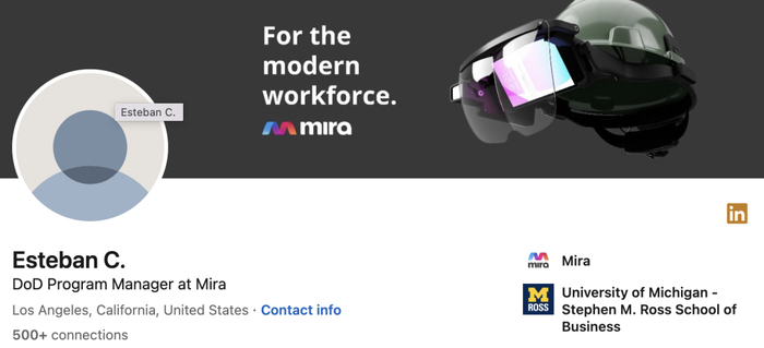 2021年Esteban C正式加入Mira,担任国防项目经理(DoD Program Manager)一职,主要为服务对象企业提供AR头显软硬件方面的使用指导。