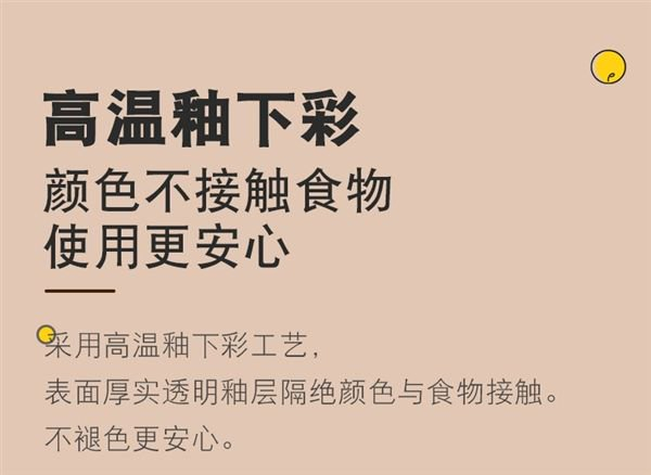 采用高温釉下彩工艺,表面厚实透明釉层隔绝颜色与失误接触,不褪色更安心。