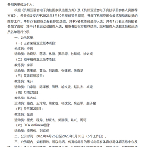 6月25日晚,国家体育总局体育信息中心公布了杭州亚运会电子竞技项目教练员和运动员参赛名单,中国代表队将参与6大电竞项目,此前由各电竞项目版权方、国内代理方推荐的集训队大名单得到大幅精简。