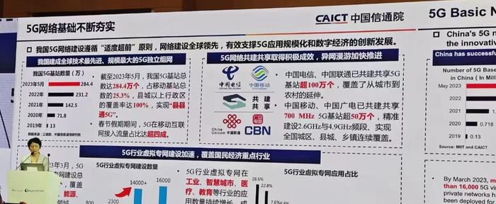 通信世界网消息(CWW)6月27日,中国信通院副院长王志勤在5G发展创新论坛上表示,中国5G网络建设遵循“适度超前”原则,网络建设全球领先,有效支撑5G应用规模化和数字经济的创新发展。截至2023年5月,我国5G基站总数已达284.4万个,县城以上行政区覆盖率达100%,实现“县县通5G”,中国电信、中国联通已共建共享5G基站超100万个,覆盖了从城市到农村的延伸。