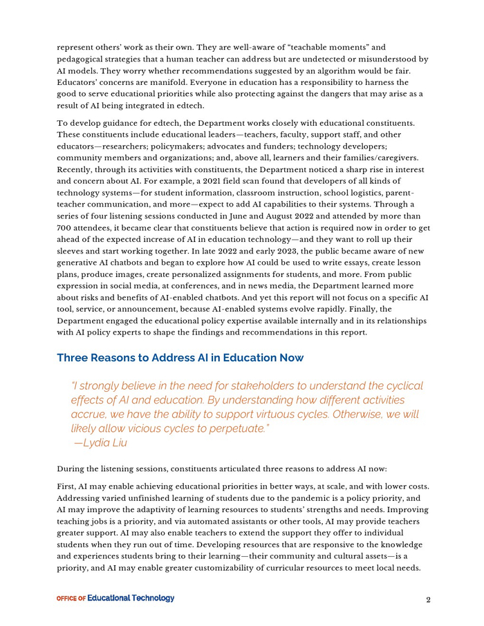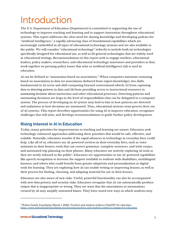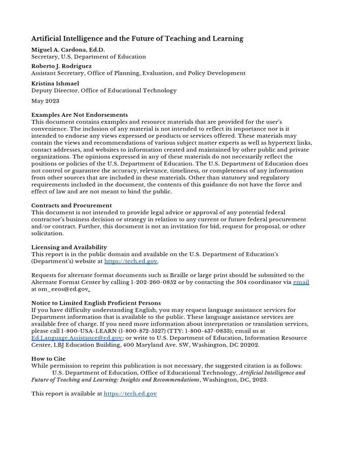 美国教育部:2023年AI和教学的未来