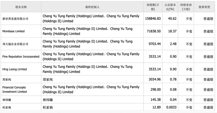 时至今日,郑志刚接管的郑氏家族仍实控周大福、新世界发展、新世界百货、ST景谷(600265.SH)等上市公司,还是中策资本控股(00235.HK)的第一大股东。