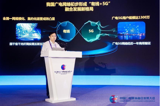 宋起柱指出,中国广电应三网融合而生,因文化强国、网络强国战略而发展壮大。经过近三年的攻坚克难,全国一网规模化、集约化运营成效凸显,全国国干光纤网和省干光纤网已实现互联互通,广电5G网络经历一年的试运行和商用验证,我国广电网络初步形成“有线+无线”全媒体融合发展新格局。目前,中国广电用户规模已达1300万。