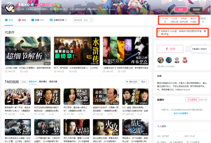 2019-2021年,B站讲了一个很动听的和年轻人紧密相连的资本故事,其独特的社区环境和定位,非常耀眼。一方面是资本上头,阿里、腾讯等巨头纷纷入局;另一方面,颇受广告主的青睐,不仅有深度的内容,还时不时能出现超大影响力的爆款主播及内容。2021年B站美股市值一度达到619.6亿美元,B站和UP主都不愁钱。