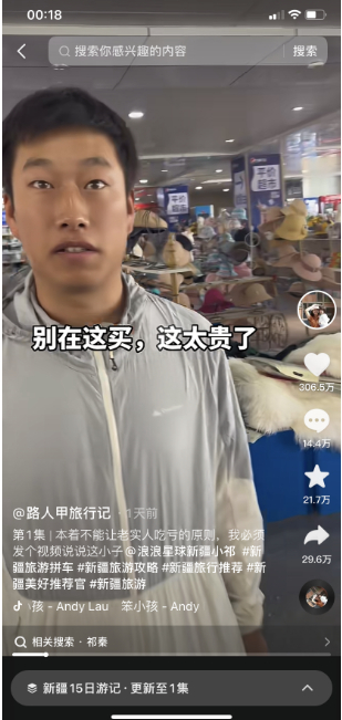 小祁之所以爆红,源于他的一位游客“路人甲旅行记”在抖音平台上发的一条表扬视频,视频于6月30日中午发布,目前点赞量334.7万,评论15万,转载32.2万。据了解,路人甲是一名旅游大V,其视频内容多与旅游相关。